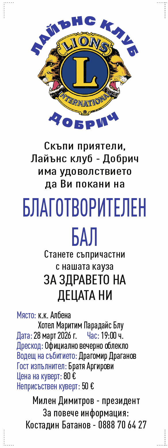 Пролетен благотворителен бал на Лайънс клуб Велико Търново Янтар