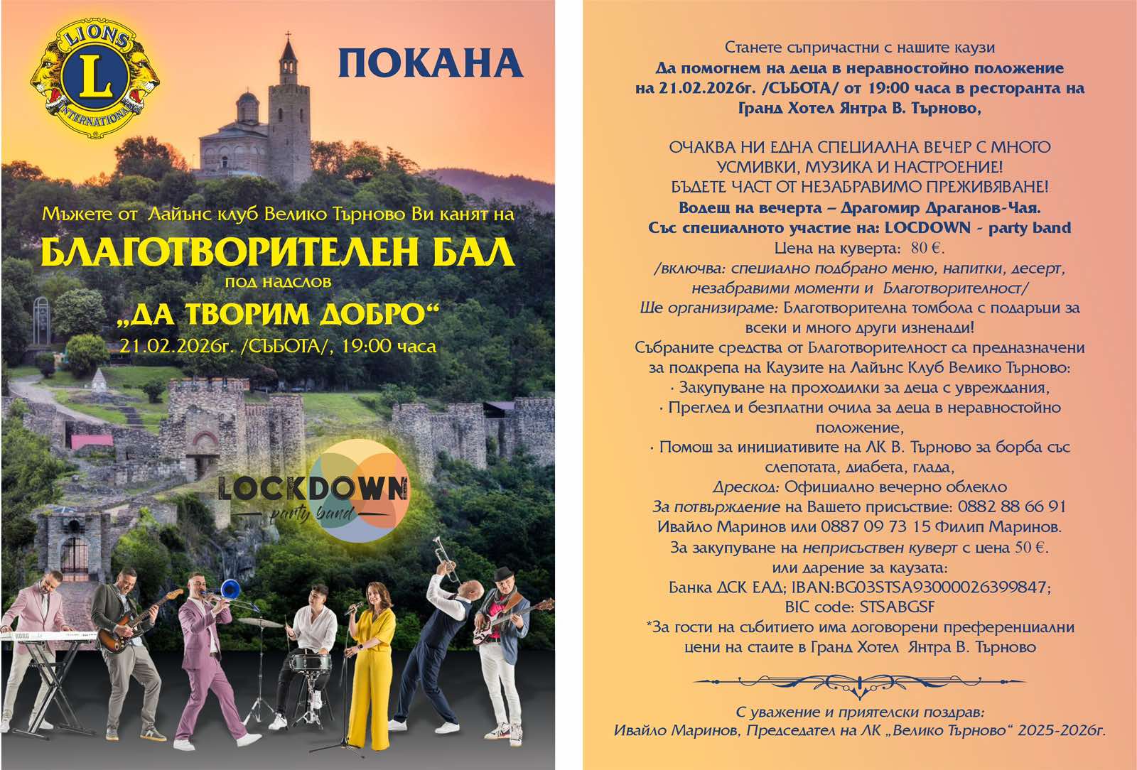 Мъжете от ЛК Велико Търново Ви канят на благотоврителен бал с кауза :